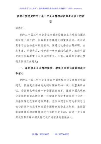 / 在学习贯彻党的二十届三中全会精神动员部署会议上的讲话