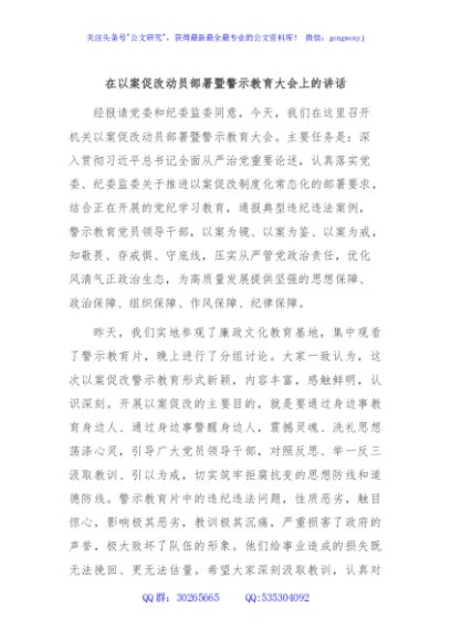 / 在以案促改动员部署暨警示教育大会上的讲话