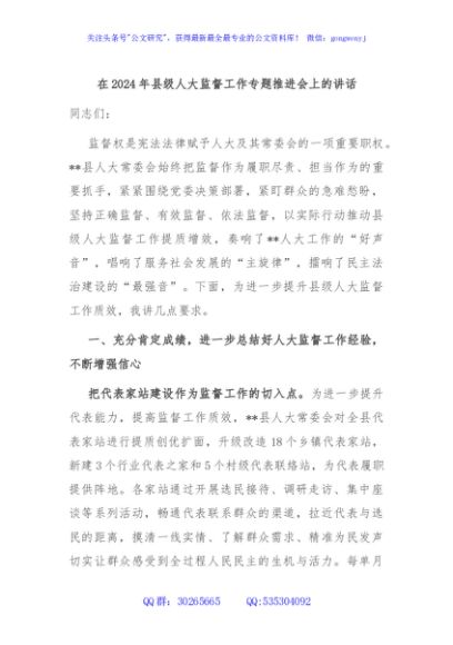 / 在2024年县级人大监督工作专题推进会上的讲话