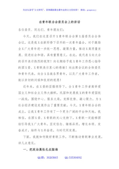 / 在青年联合会委员会上的讲话