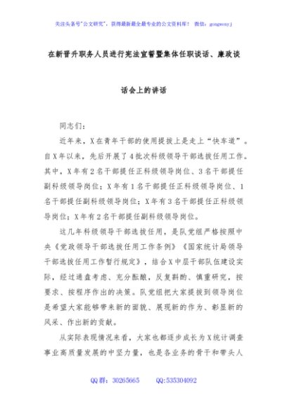 / 在新晋升职务人员进行宪法宣誓暨集体任职谈话、廉政谈话会上的讲话