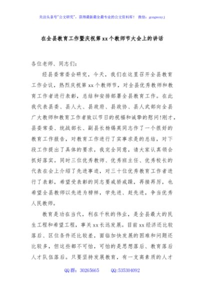 / 在全县教育工作暨庆祝第xx个教师节大会上的讲话