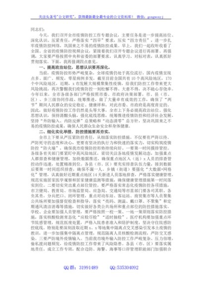 / 在全市疫情防控工作专题会上的讲话