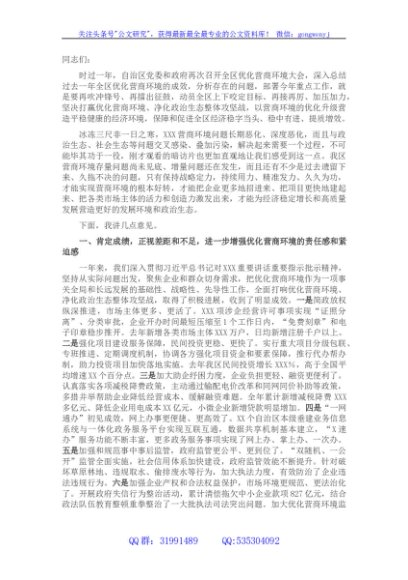 / 在全区优化营商环境大会上的讲话