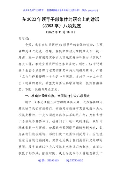 / 在2022年领导干部集体约谈会上的讲话(八项规定