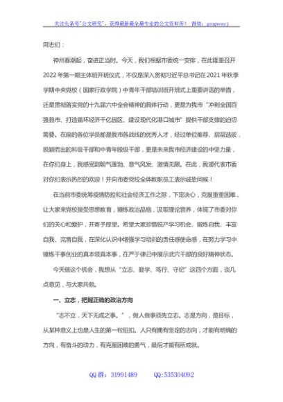 / 组织部长在市委党校2022年第一期主体班开班仪式上的讲话提纲