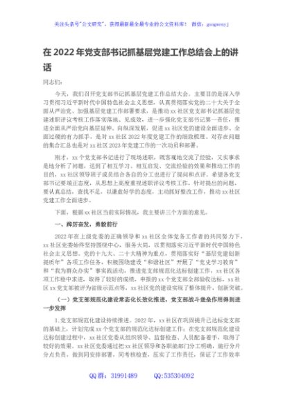 / 在2022年党支部书记抓基层党建工作总结会上的讲话