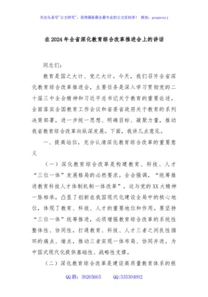 / 在2024年全省深化教育综合改革推进会上的讲话