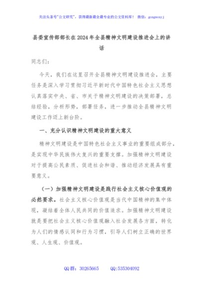 / 县委宣传部部长在2024年全县精神文明建设推进会上的讲话