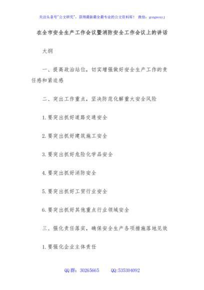 / 在全市安全生产工作会议暨消防安全工作会议上的讲话