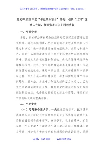 党支部2024年度“书记领办项目”案例:创新“1234”党建工作法,推动党建与业务同频共振