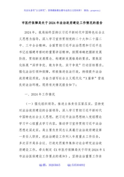 / 市医疗保障局关于2024年法治政府建设工作情况的报告
