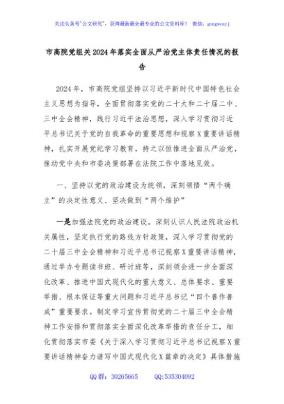 / 市高院党组关2024年落实全面从严治党主体责任情况的报告