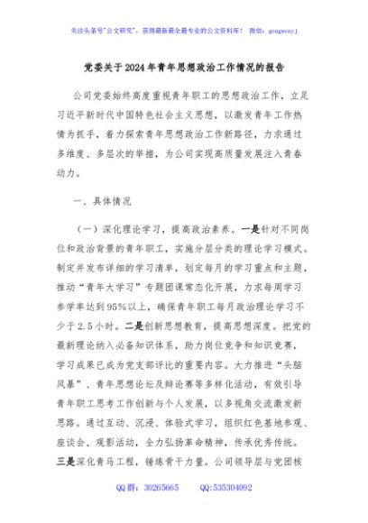 / 党委关于2024年青年思想政治工作情况的报告