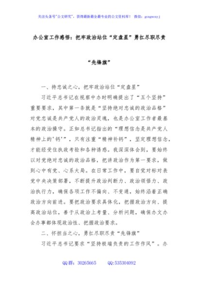 / 办公室工作感悟:把牢政治站位“定盘星”勇扛尽职尽责“先锋旗”
