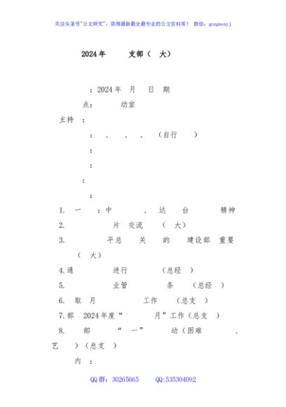 / 2024年XXX党支部(扩大)会议记录