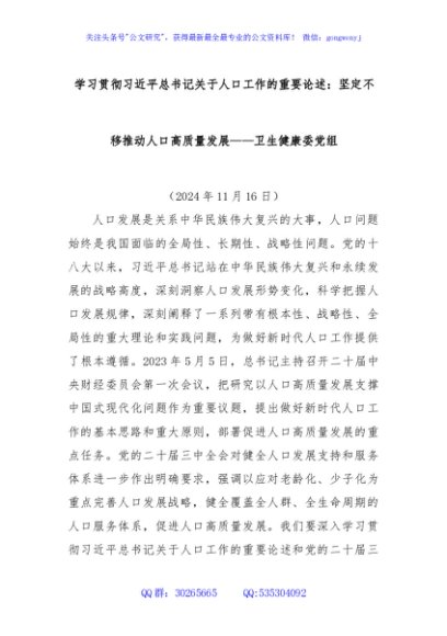 / 学习贯彻习近平总书记关于人口工作的重要论述:坚定不移推动人口高质量发展——卫生健康委党组