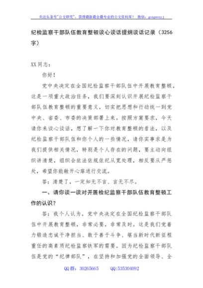 / 纪检监察干部队伍教育整顿谈心谈话提纲谈话记录(3256字)
