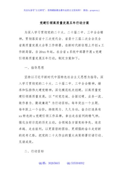 / 党建引领高质量发展五年行动方案