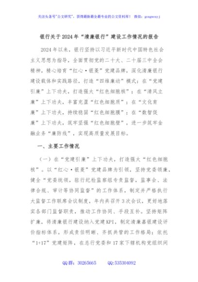 / 银行关于2024年“清廉银行”建设工作情况的报告