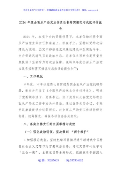 / 2024 年度全面从严治党主体责任制落实情况与成效评估报告