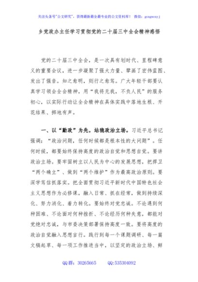 / 乡党政办主任学习贯彻党的二十届三中全会精神感悟