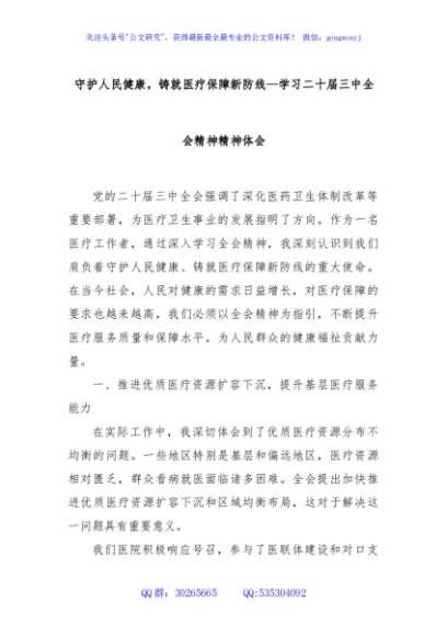 / 守护人民健康,铸就医疗保障新防线—学习二十届三中全会精神精神体会