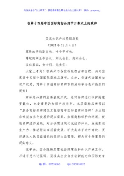 / 在第十四届中国国际商标品牌节开幕式上的致辞