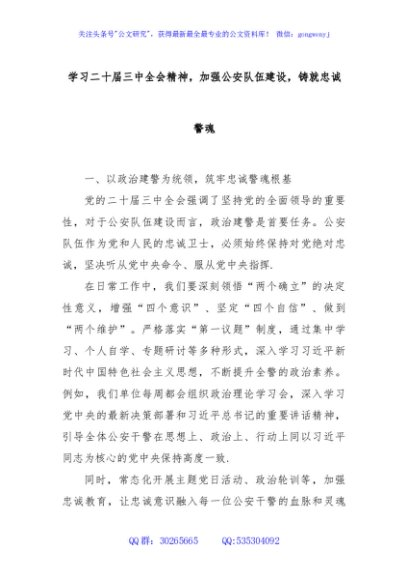/ 学习二十届三中全会精神,加强公安队伍建设,铸就忠诚警魂