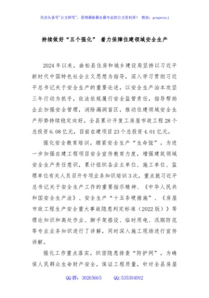 / 持续做好“五个强化” 着力保障住建领域安全生产