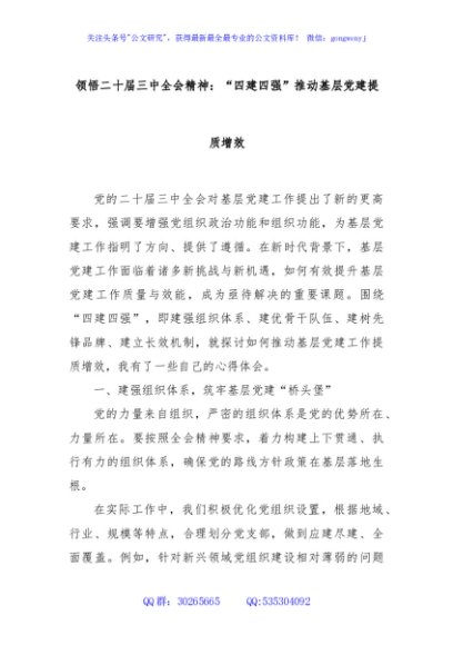 领悟二十届三中全会精神:“四建四强”推动基层党建提质增效