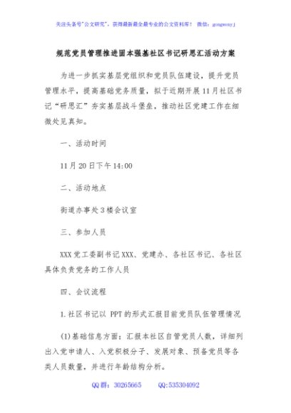 / 规范党员管理推进固本强基社区书记研思汇活动方案