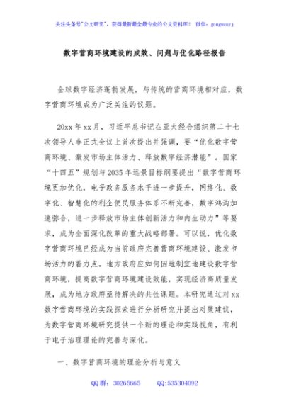 / 数字营商环境建设的成效、问题与优化路径报告