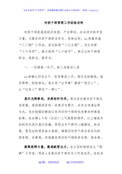 / 村级干部管理工作经验材料