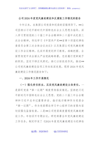 / 公司2024年度党风廉政建设和反腐败工作情况的报告