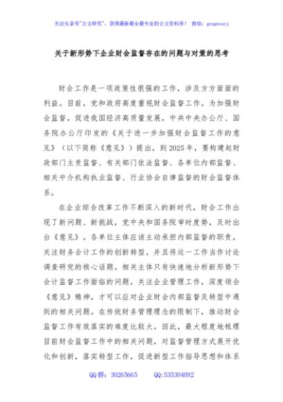 / 关于新形势下企业财会监督存在的问题与对策的思考