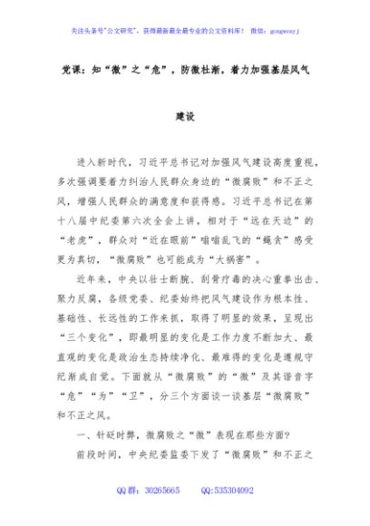 / 党课:知“微”之“危”,防微杜渐,着力加强基层风气建设
