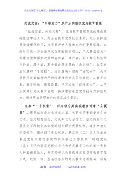 / 交流发言:“四维发力”从严从实狠抓党员教育管理