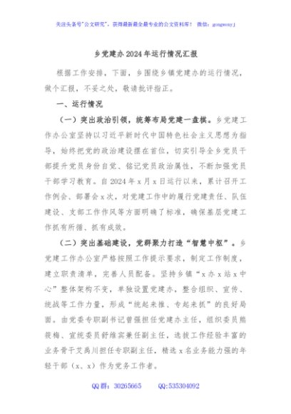 / 乡党建办2024年运行情况汇报