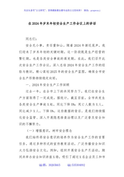 / 在2024年岁末年初安全生产工作会议上的讲话
