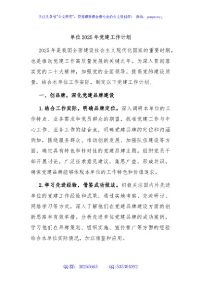 / 单位2025年党建工作计划