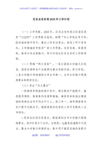 / 区农业农村局2025年工作计划