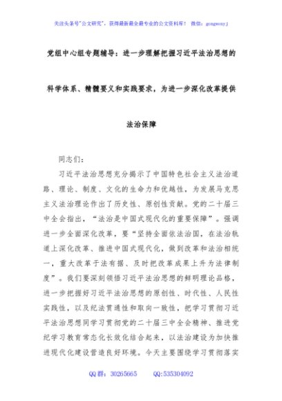 / 党组中心组专题辅导:进一步理解把握习近平法治思想的科学体系、精髓要义和实践要求,为进一步深化改革提供法治保障