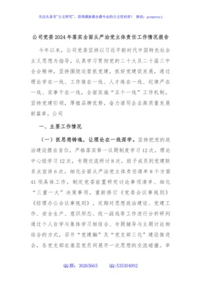 / 公司党委2024年落实全面从严治党主体责任工作情况报告