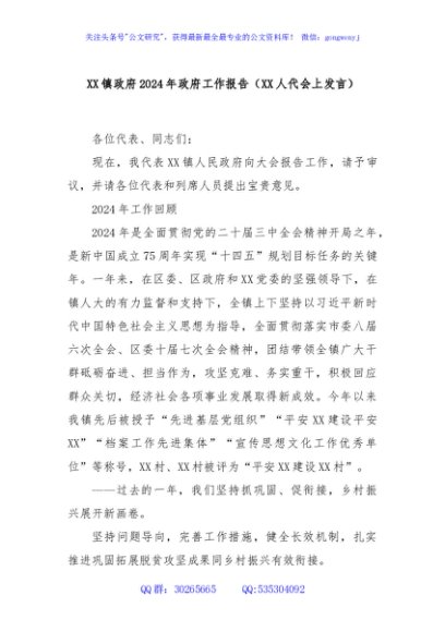 / XX镇政府2024年政府工作报告(XX人代会上发言)