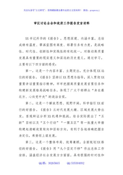 审议讨论全会和政府工作报告发言材料