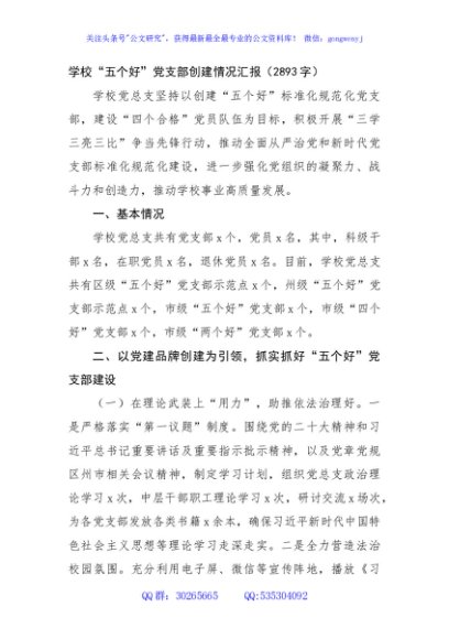 / 学校“五个好”党支部创建情况汇报(2893字)