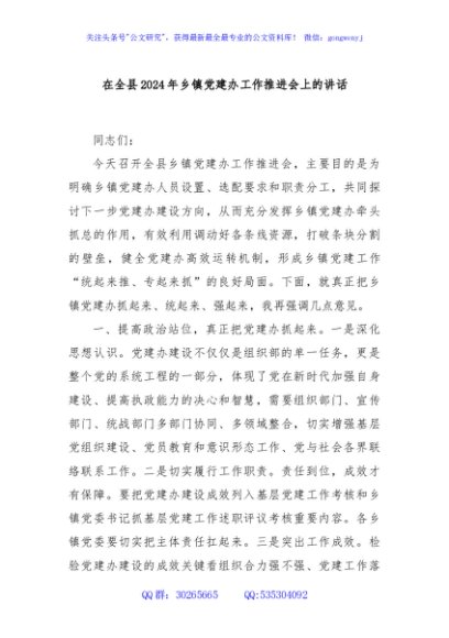 / 在全县2024年乡镇党建办工作推进会上的讲话
