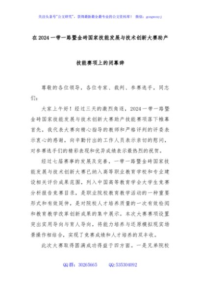 / 在2024一带一路暨金砖国家技能发展与技术创新大赛助产技能赛项上的闭幕辞
