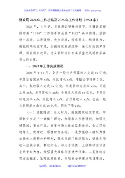 / 财政局2024年工作总结及2025年工作计划(2924字)